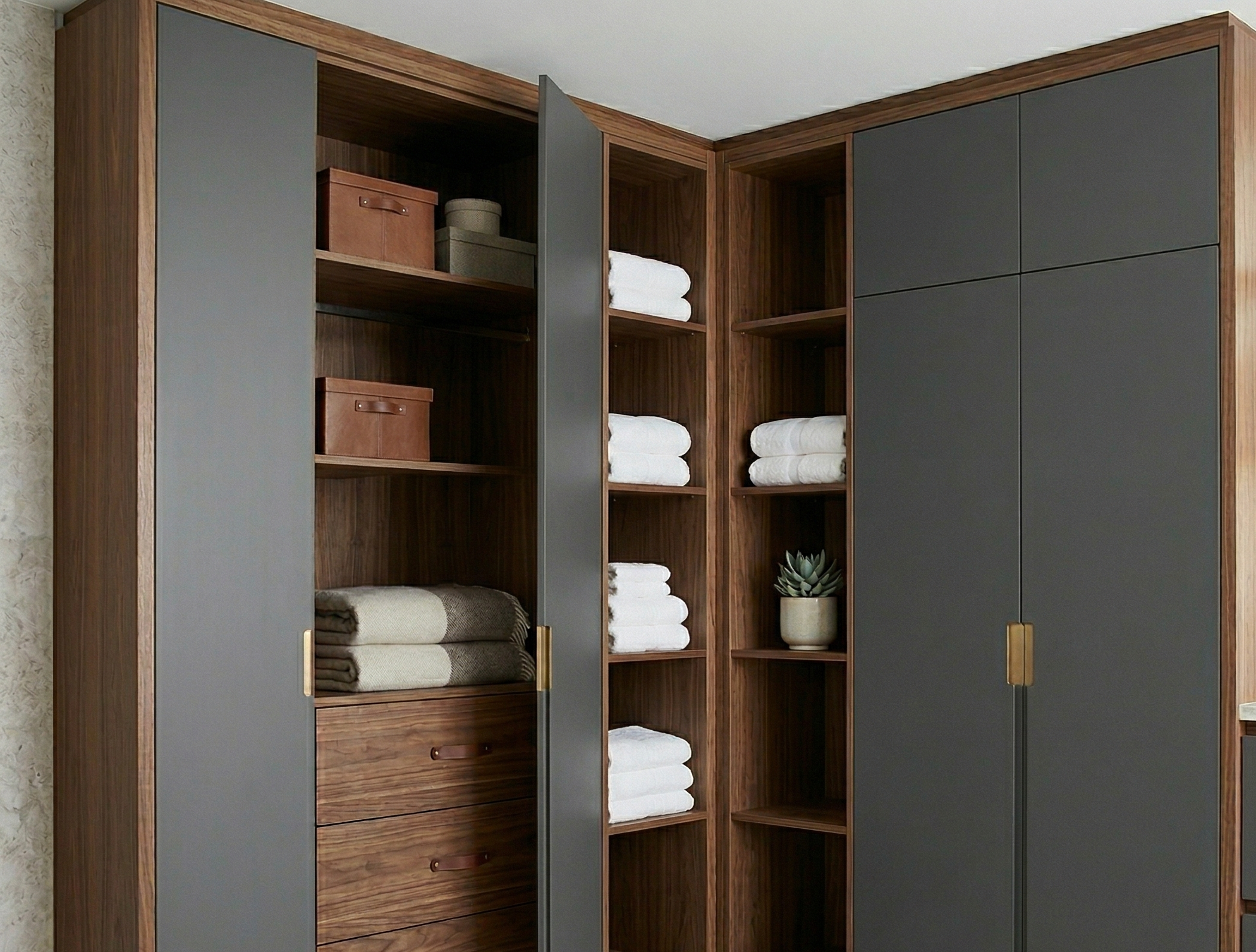 Köşe alanınızın tamamından en iyi şekilde yararlanmanızı sağlayan, özel yapım köşe dolabı.
