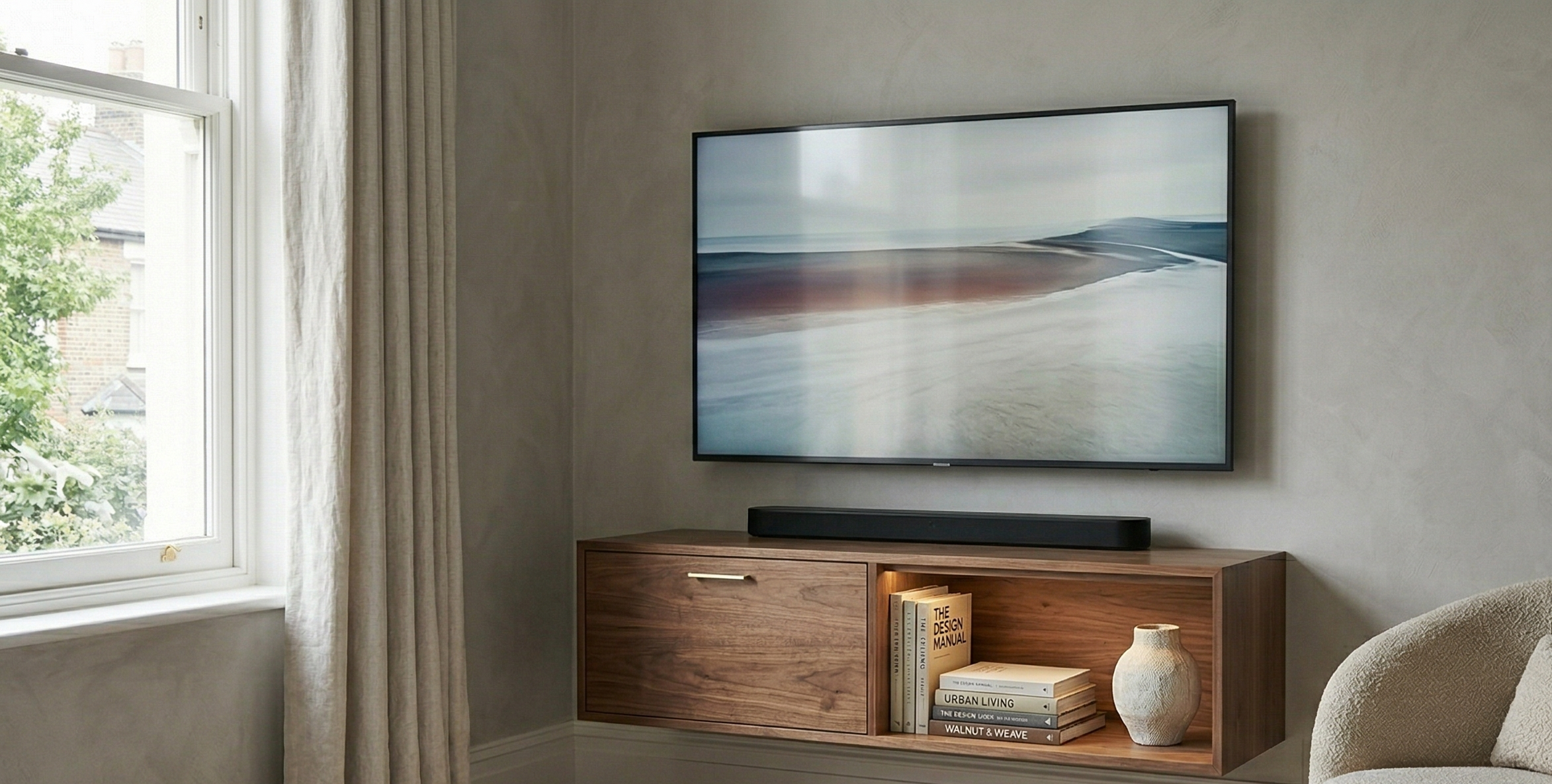 İstediğiniz düzenlemeyle, duvara monte veya yere monte edilebilen, özel tasarım TV sehpası.